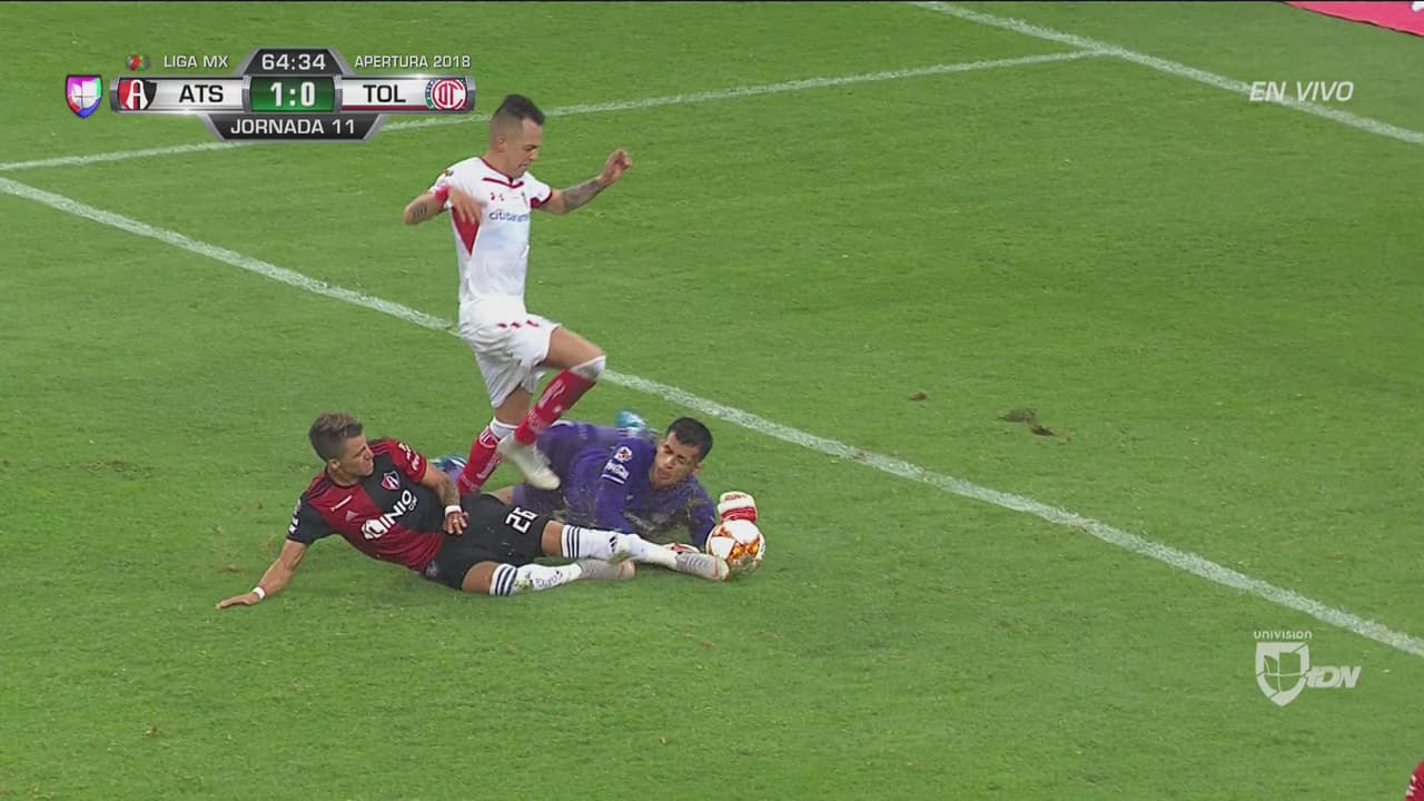 El juvenil del Atlas quedaba frente al arquero pero se le terminó alargando la pelota.