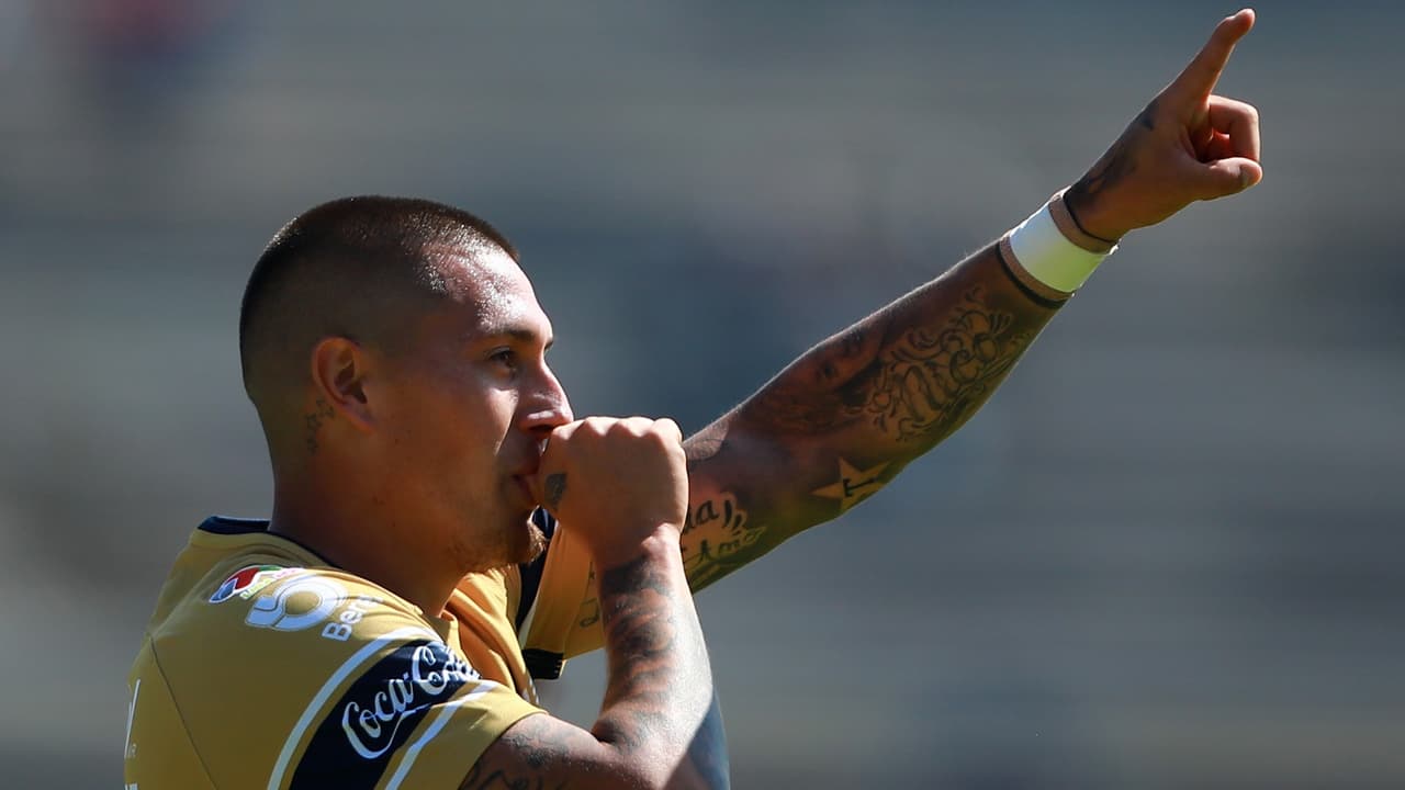 El chileno, en ese momento vistiendo la playera de Pumas, se fue expulsado por una roja directa luego de una dura entrada sobre E dson Álvarez al minuto 69, en el partido en que las Águilas los eliminaron de los cuartos de final de la Liga MX en el Clausura 2018.