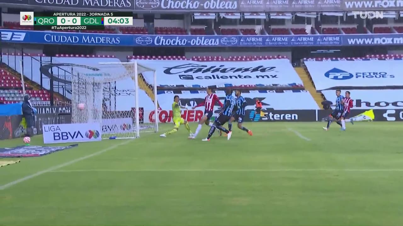 ¡Cerca Chivas! ‘Tepa’ González llega forzado y remata apena a un lado