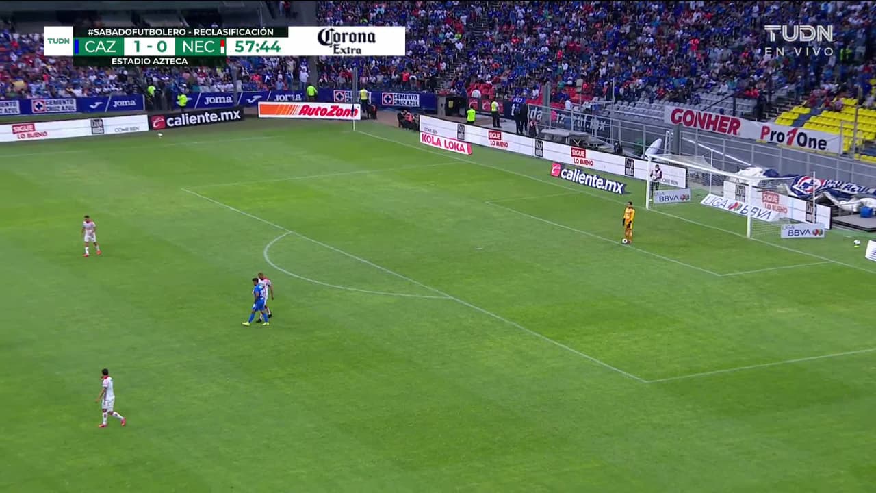 Iván Morales (Cruz Azul) remata al poste derecho| Disparo con la derecha desde el centro del área.