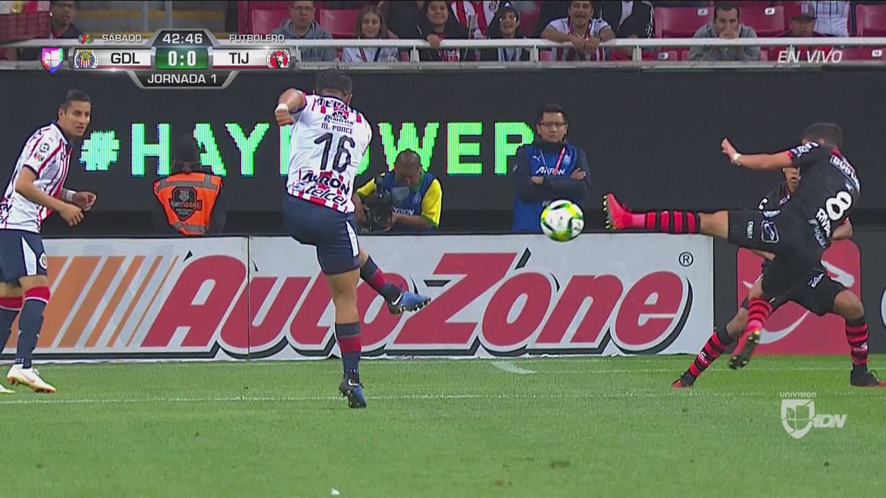 Chivas volvió a tocar la puerta de Lajud con un disparo que pasó cerca de la portería.