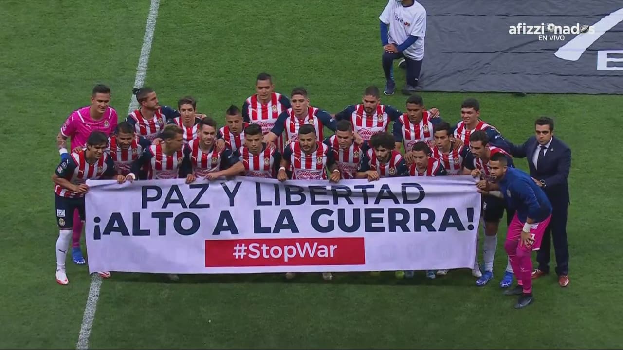 Chivas se sumó a los mensajes que piden un alto a la guerra frente a los conflictos bélicos entre Rusia y Ucrania que han paralizado al mundo y lo hizo con una pancarta previo al partido frente al Puebla en la jornada 7 del Grita México C22 de la Liga MX.