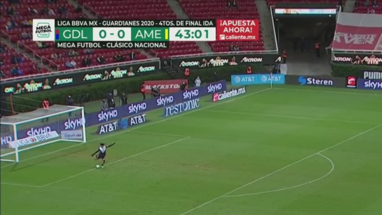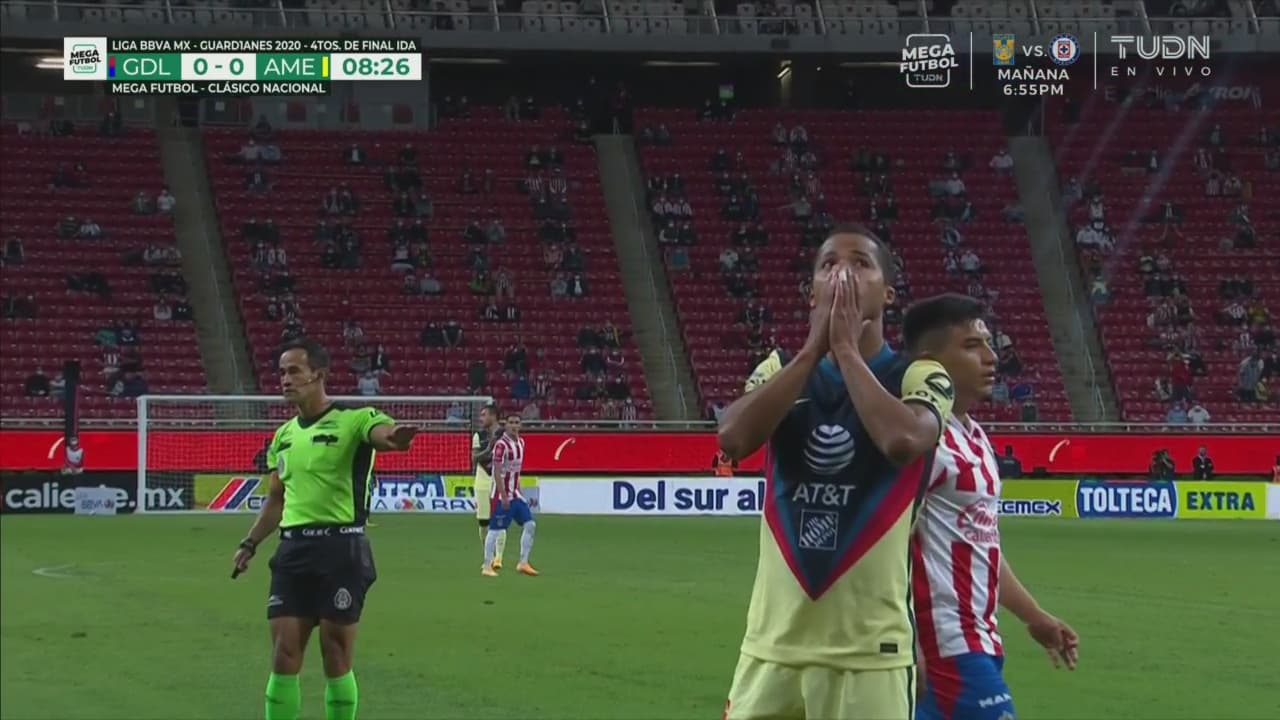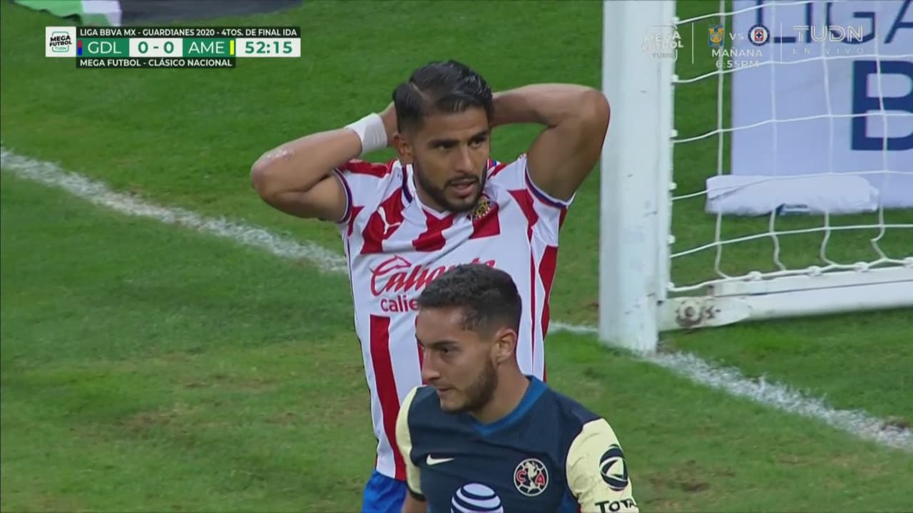Henry Martín se pierde el mano a mano ante Gudiño y con ello no puede abrir el marcador en favor del América.