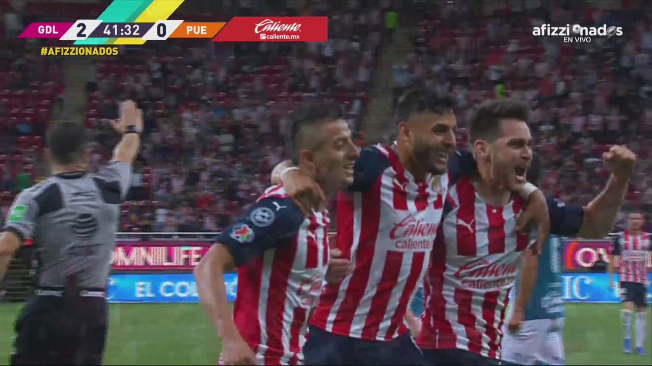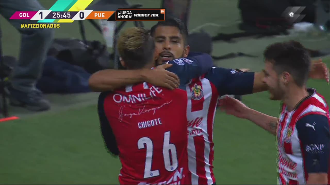 La supremacía de Chivas en este encuentro se presentó una vez más en una jugada que Angulo, Roberto Alvarado y Vega construyeron para que el '10' de Chivas pudiera poner un cañonazo en el fondo de las redes de Puebla.