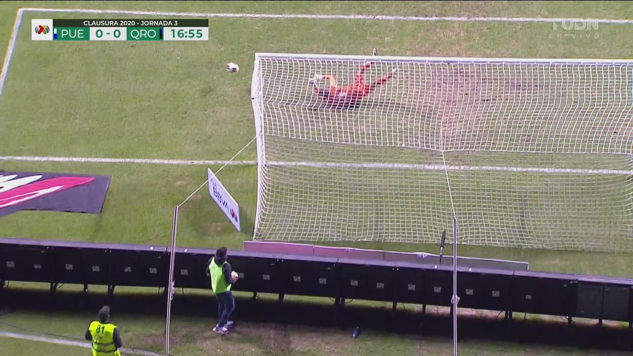 El defensa del Puebla se llevó la peor parte pues quedó tendido sobre el terreno de juego y luego tuvo que salir de cambio ante el duro golpe.