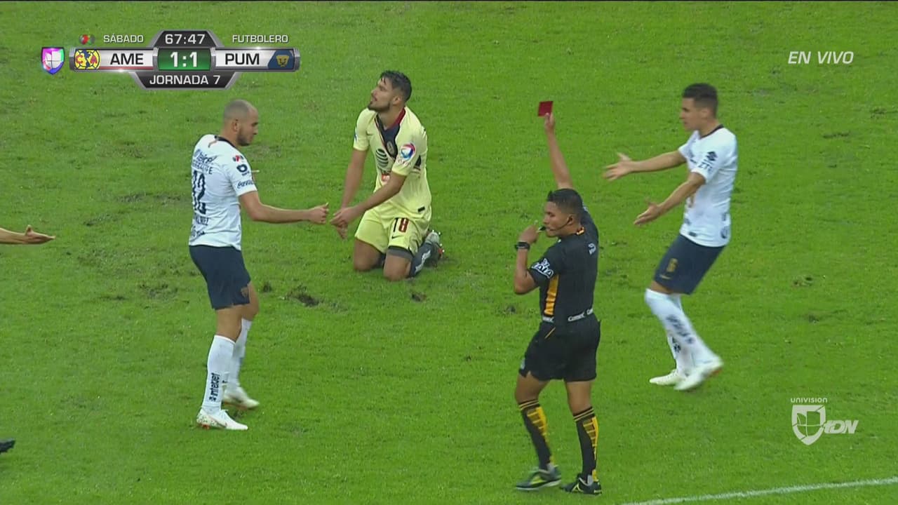 Fueron 30 minutos los que Pumas jugó con dos hombres más por las expulsiones de Roger y Valdés. América llegará a tres años sin perder con los felinos.