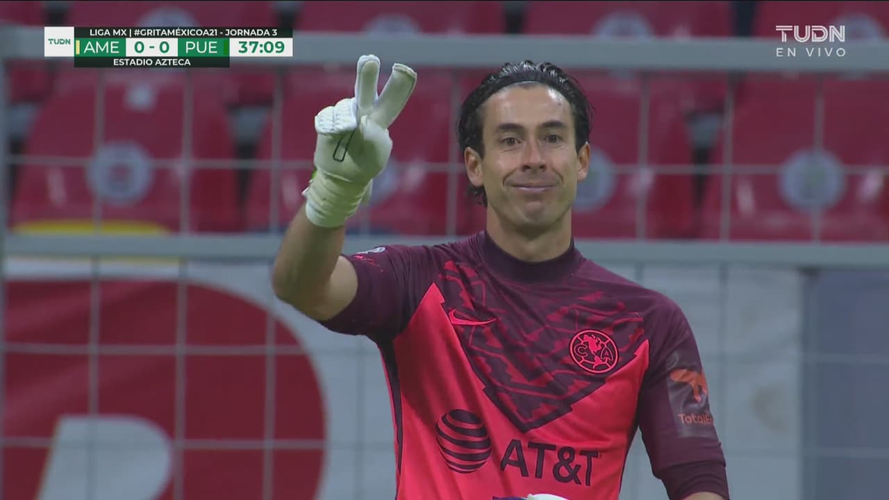 El de Puebla recibe en el área tras llegada por izquierda y la estrella en las manos del portero.