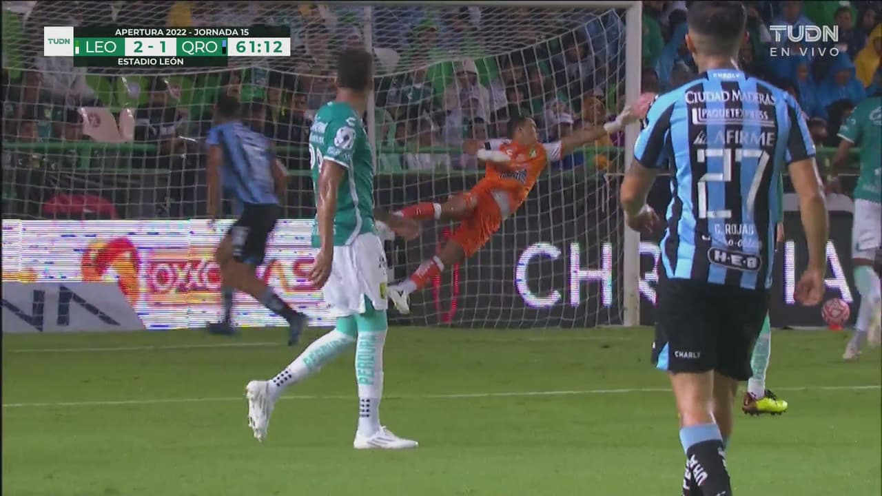 El capitán de los Gallos buscaba un rematador en el centro del área, pero el balón casi se mete al 61’.
