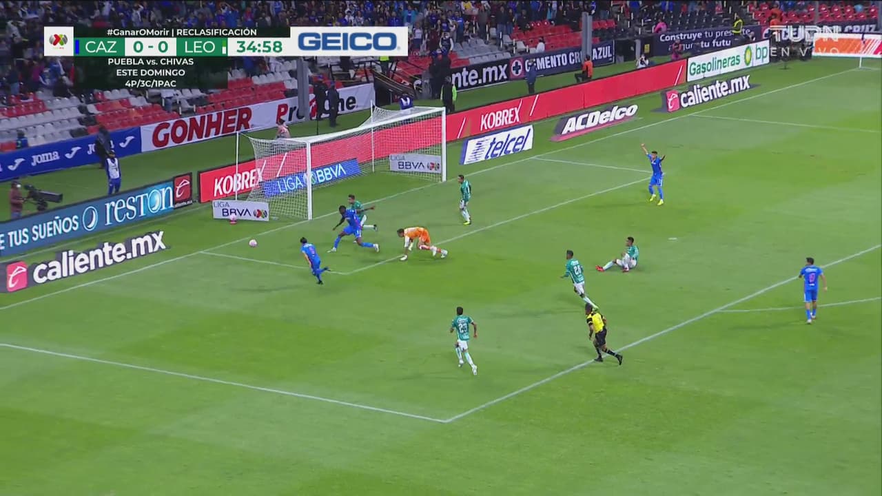 León se salva con ayuda de su portero, el delantero se había se quedó mano a mano y no anota.
