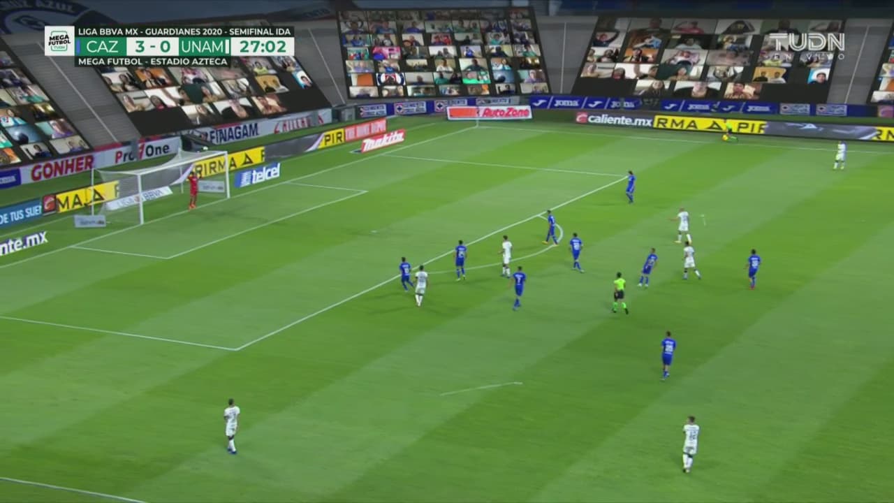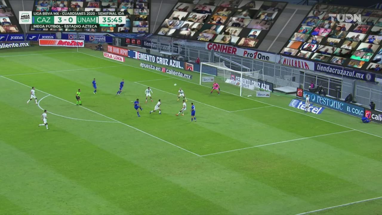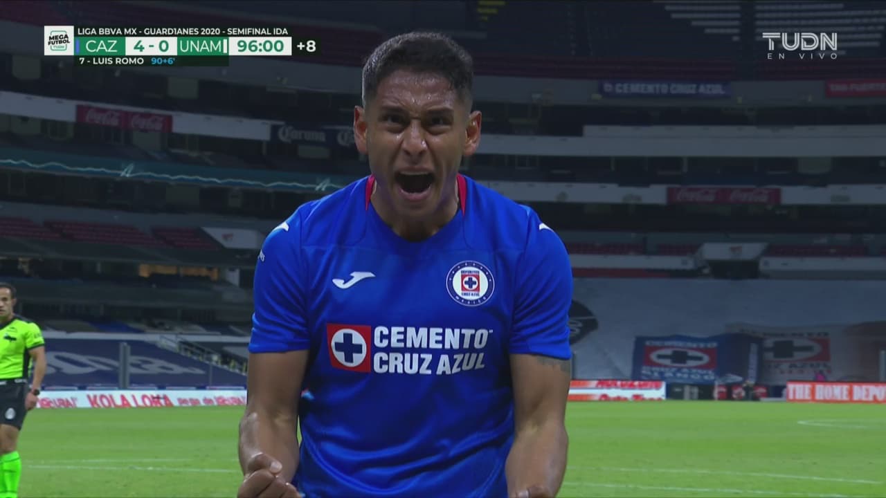 ¡Y llegó el tercero! Luis Romo mandó el balón a la red en una embestida brutal de Cruz Azul a los universitarios.