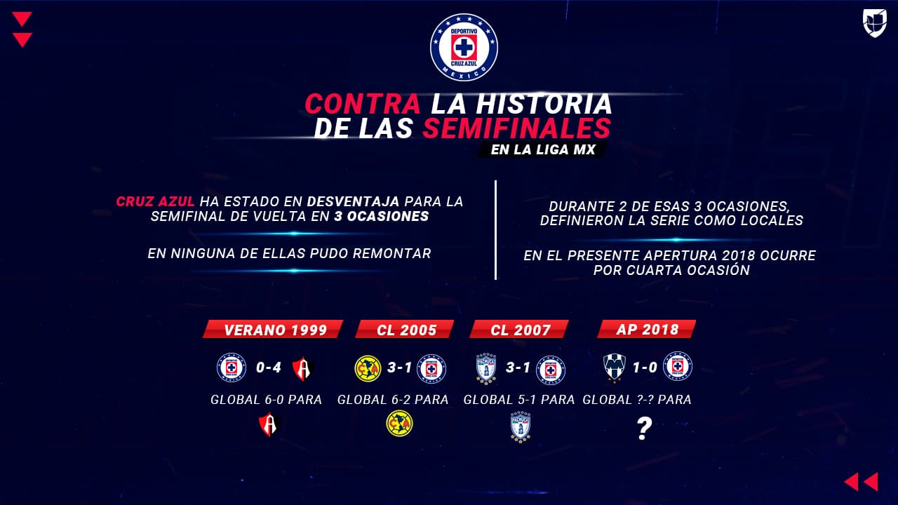 Durante esta campaña, por cuarta ocasión en la historia de los torneos cortos, el conjunto celeste enfrentará la Semifinal de vuelta con el marcador adverso. Sin embargo, cabe resaltar que las tres veces que se presentó este escenario para la Máquina, se quedaron en la orilla de la disputa por el título en México.