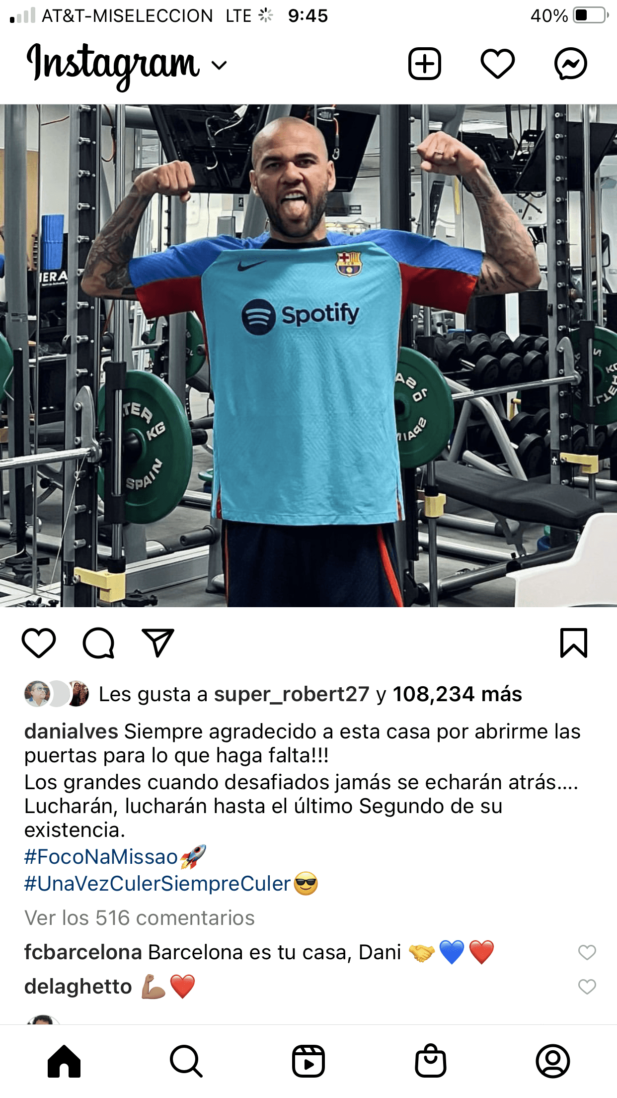 En una publicación de Instagram, Alves agradeció al Barça su hospitalidad para que pudiera hacer su rutina, a lo que el club le contestó que es su casa. Pumas quedó eliminado en Liga MX.