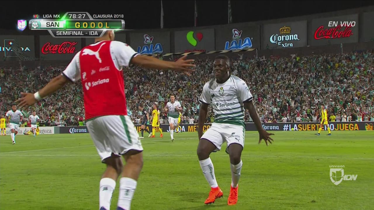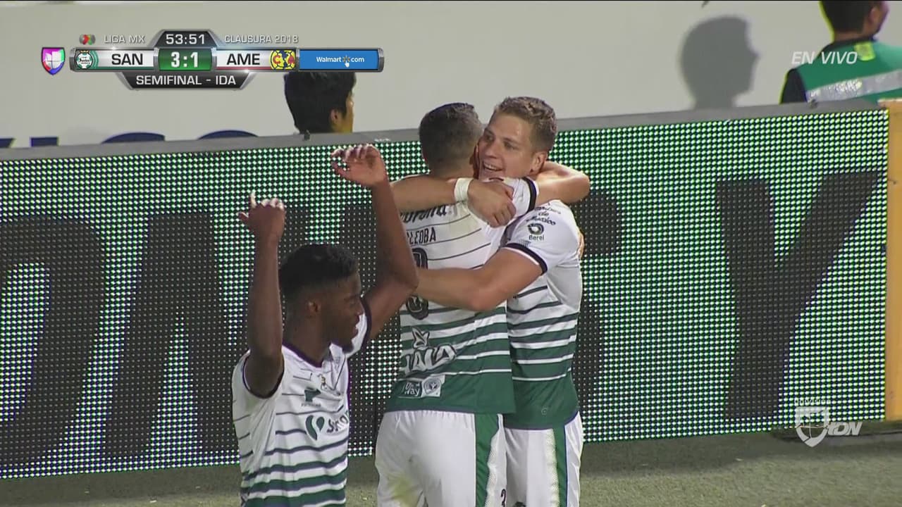 La Laguna en Torreón fue una fiesta. El Estadio Corona se pintó de verde para que Santos prácticamente definiera las semifinales al golear 4-1 al América.
