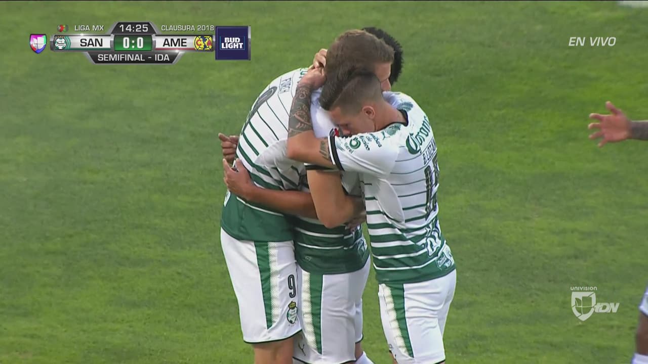 Muy rápido Santos se fue al frente en el partido gracias a un gol de Osvaldo Martínez. Ley del Ex en el Estadio Corona.