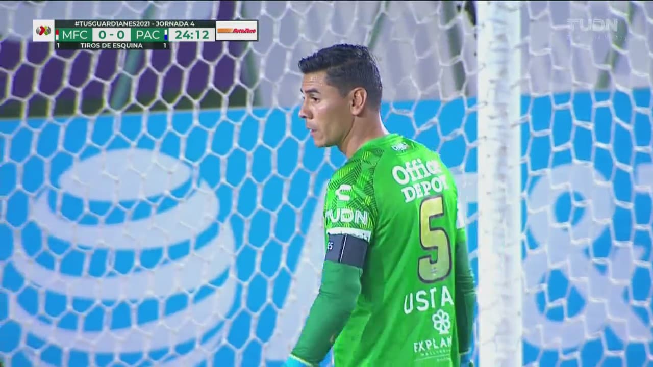 El atacante del Mazatlán se escapó y mandó un disparo potente que contuvo el portero del Pachuca al 23’.