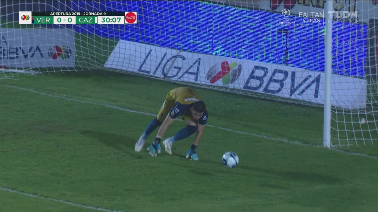 El jugador de Cruz Azul saca disparo a las afueras del área que termina en las manos del arquero Sebastián Jurado al 29’.