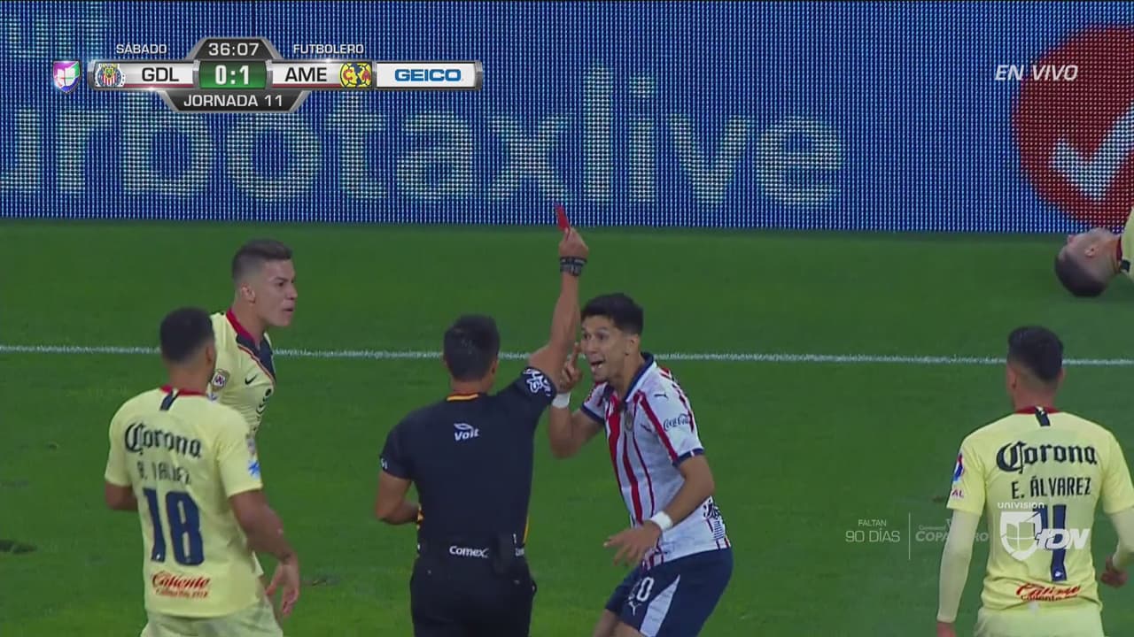 Prácticamente instantes después, Pulido tuvo que ser asistido por los médicos del equipo, mientras Molina se iba expulsado por una plancha sobre Guido Rodríguez dejando a Chivas con 10 y con un cambio forzado pues el 9 ya no pudo continuar.
