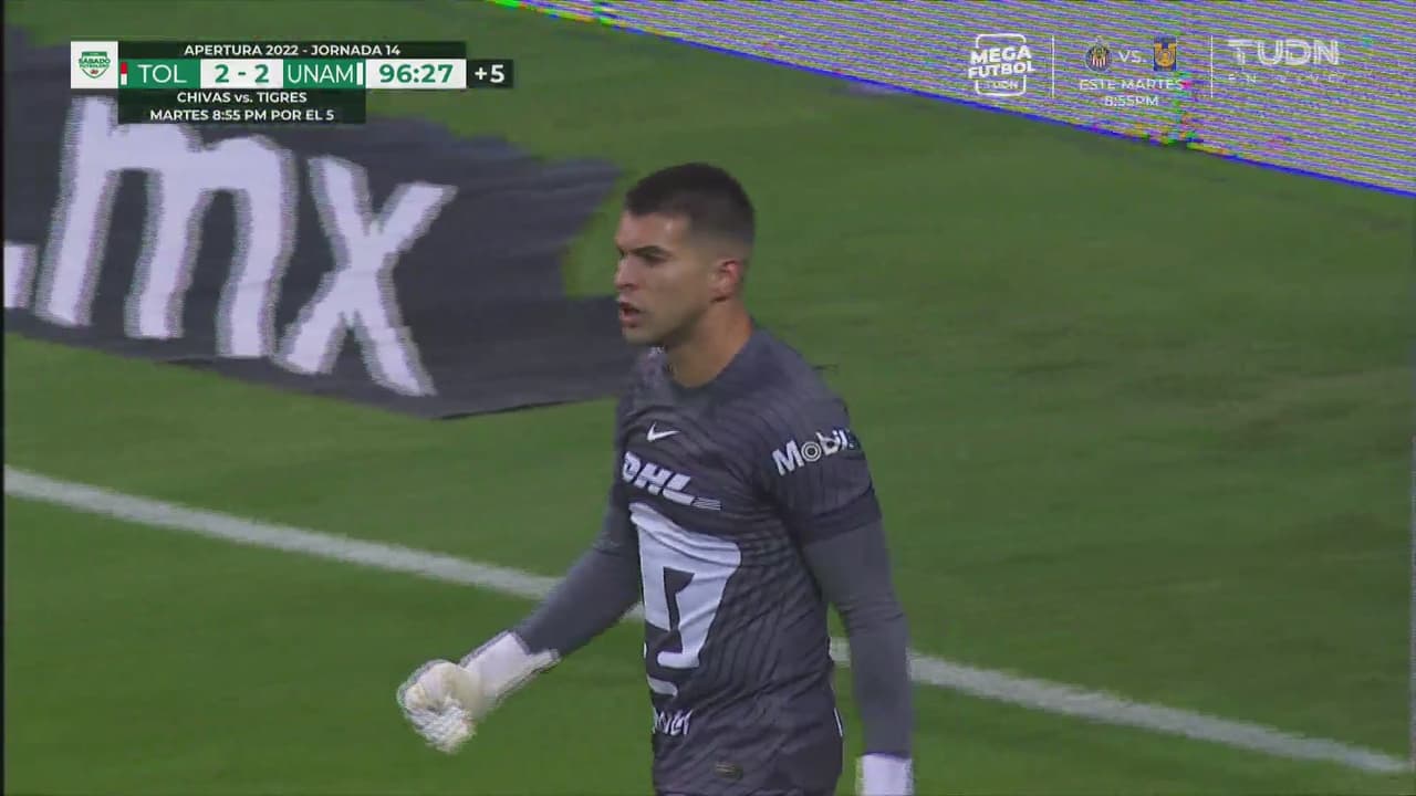 En un tiro de esquina en los últimos minutos del encuentro, el portero no dudó en ir al área rival y con un remate con la cabeza envió el balón al fondo de la red del Toluca, lo que significó el empate 2-2.