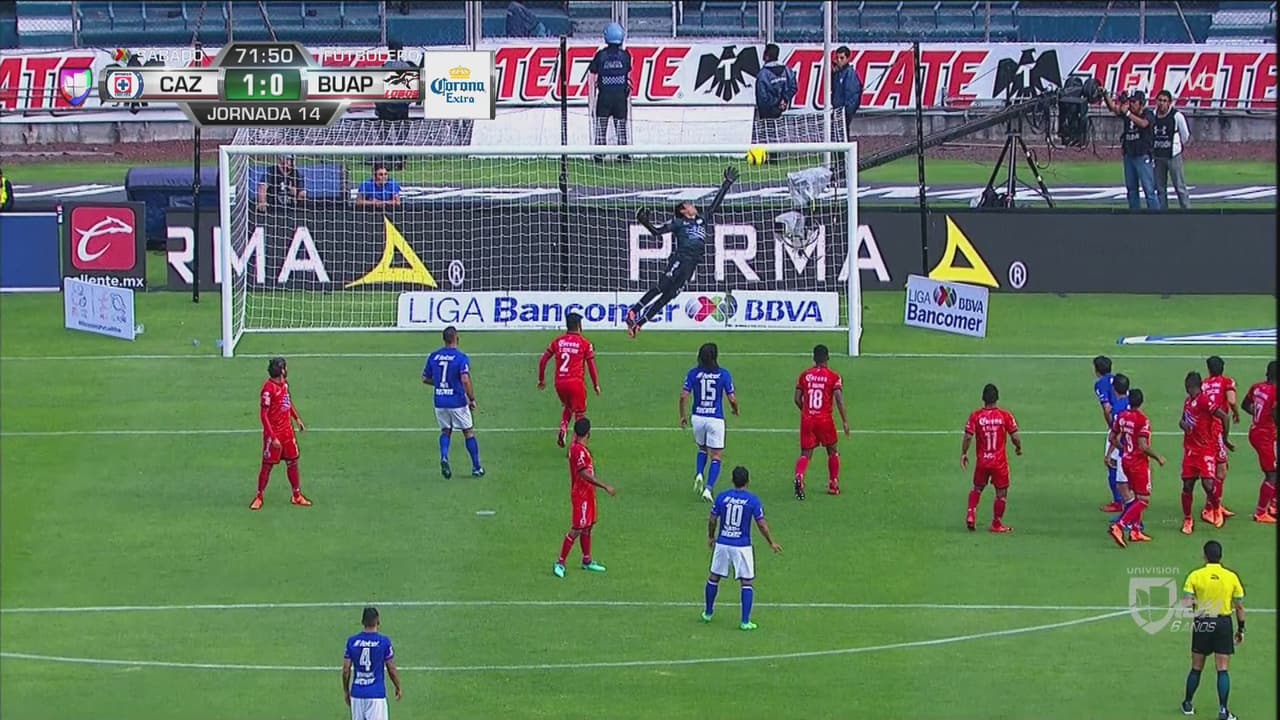 Adrián Aldrete cobra tiro libre directo y la pelota pega en el larguero, cuando parecía que Cruz Azul marcaba el segundo tanto de la tarde.
