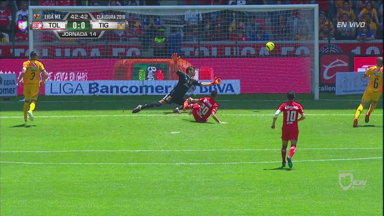 Gran jugada de Borja, quien con una diagonal cruzada le puso medio gol a Uribe, pero la suerte no le sonrío.