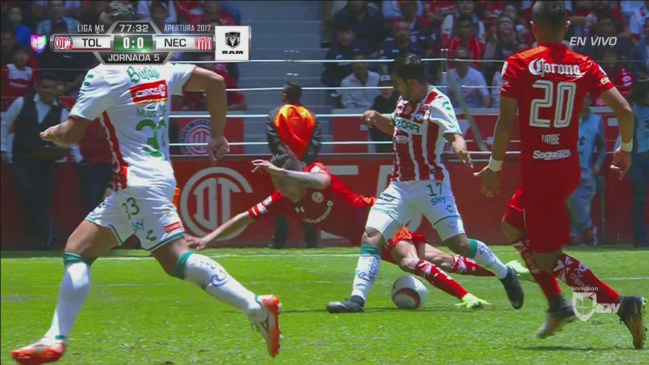 Se pedía penal a favor del Deportivo Toluca en área del Necaxa pero el árbitro dijo: 'siga'.