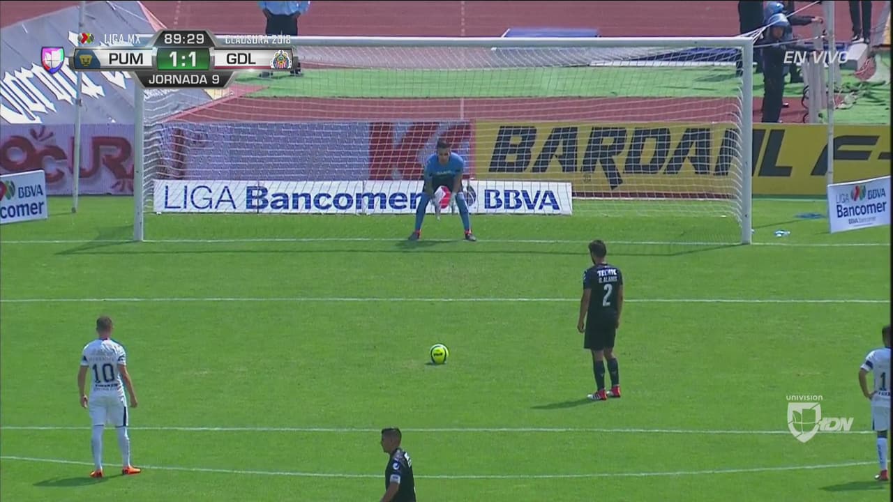 Todo indicaba que Guadalajara sumaría su segundo triunfo del torneo, pero Alanís no pudo replicar su éxito y voló de manera increíble la pena máxima.