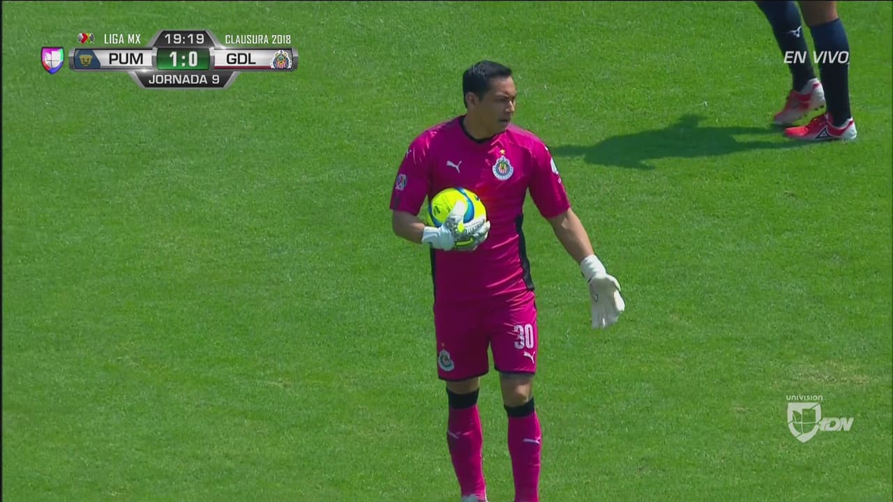 Al 19’, Chivas se salvó del segundo. Jesús Gallardo se inventó un disparo raso y cruzado, pero una gran reacción de Rodolfo Cota y el poste evitaron que Pumas aumentará la ventaja.