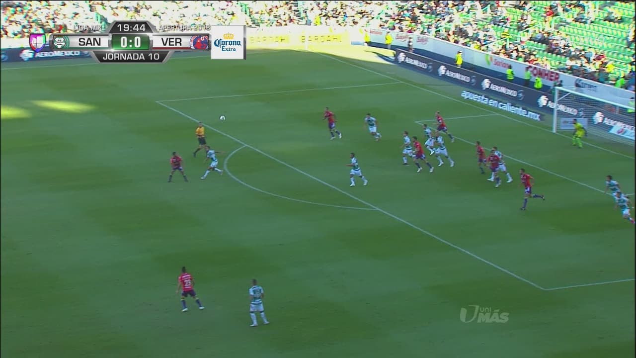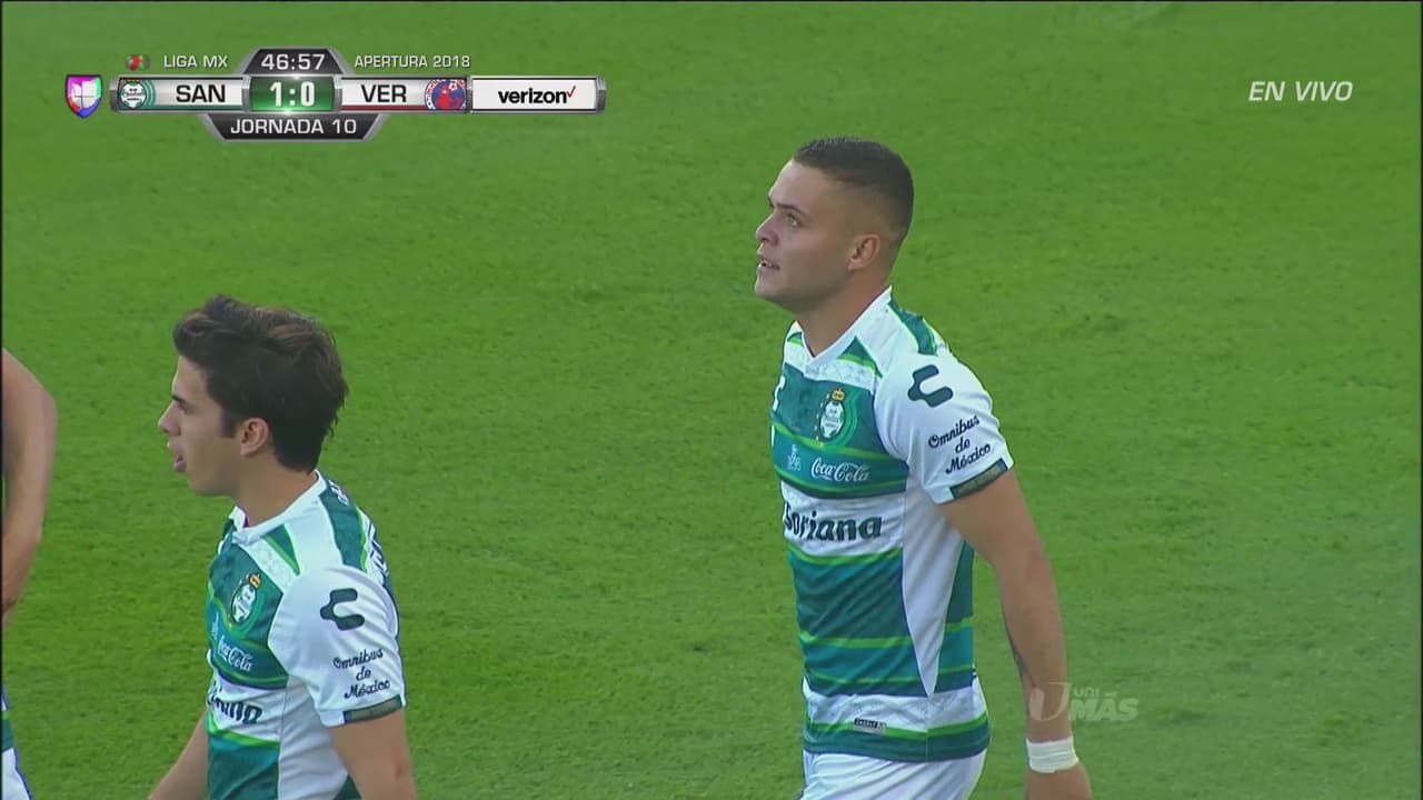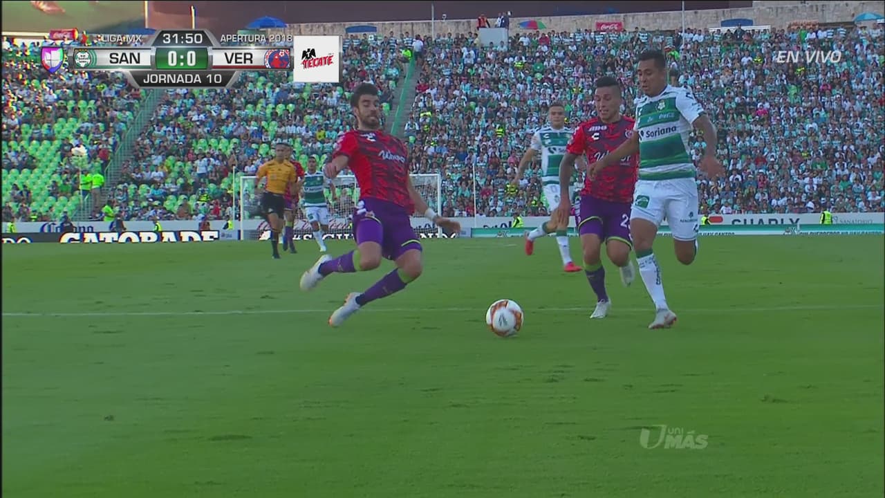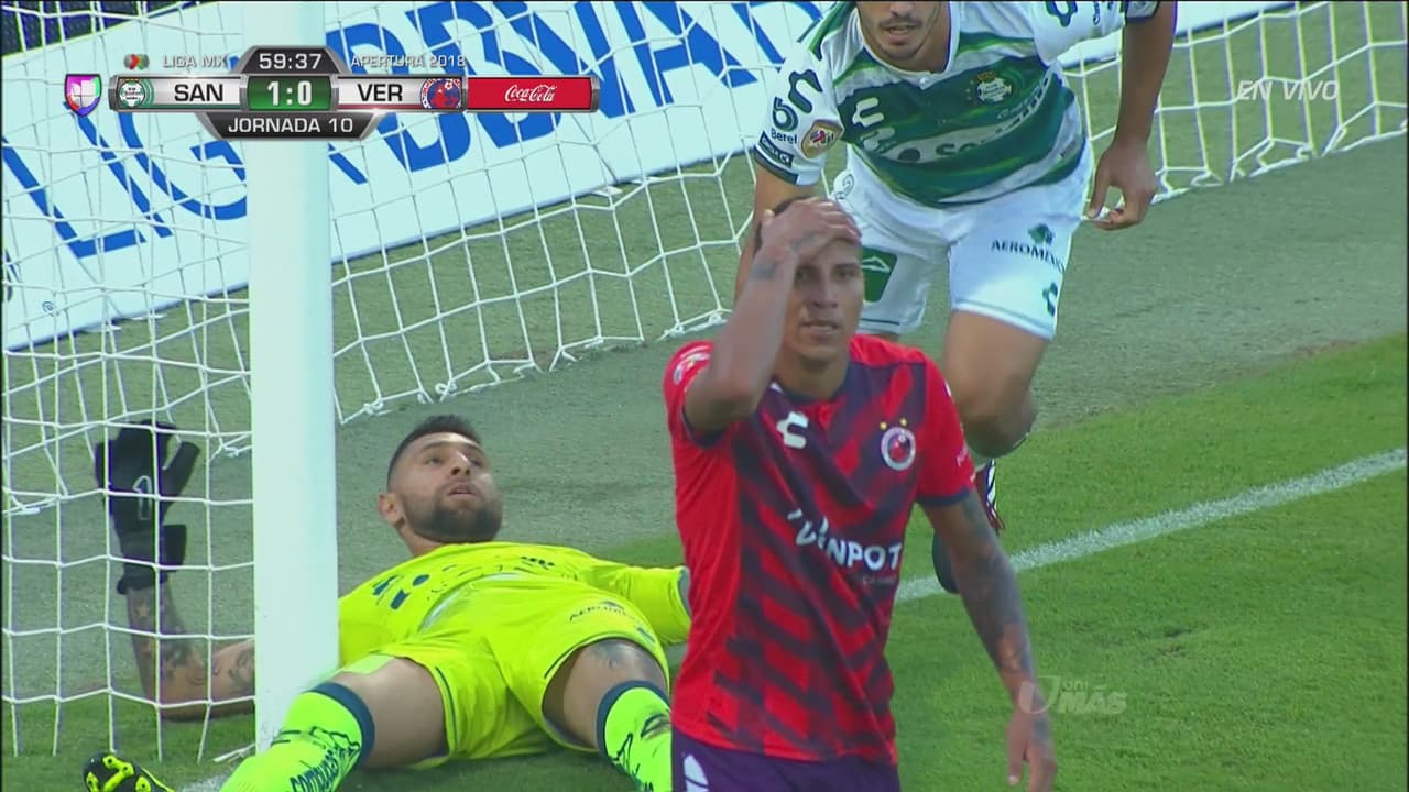 Al fianl del primer tiempo, 'Cabecita' Rodríguez se quedó cerca de hacer un golazo, pero fue un aviso, porque iniciando la parte complementaria, la línea defensiva de los 'jarochos' entró dormida y a los 46' puso adelante a Santos.