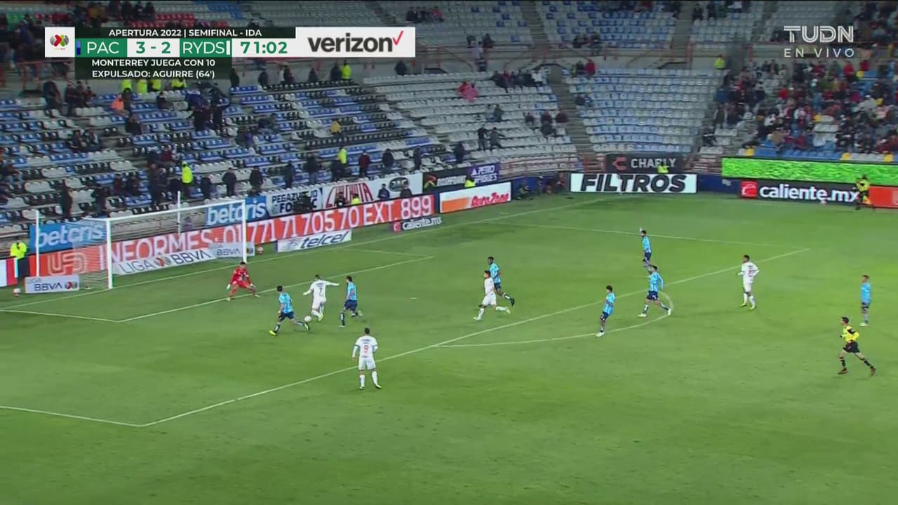 Luis Romo abre para el ‘Mellizo’ y éste se hace un autopase para poder liquidar, pero el balón termina por un lado.