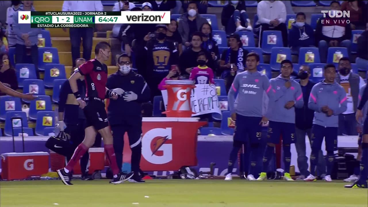 Alan Mozo (Pumas UNAM) ha recibido una tarjeta roja por pelearse.