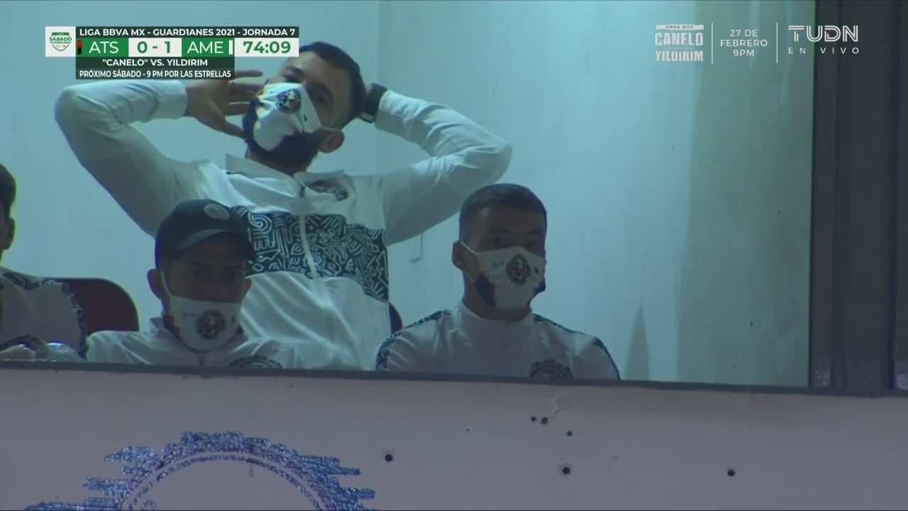 Para el segundo tiempo, la toma de la televisión encontró a Federico Viñas en un palco del Estadio Jalisco, junto a Emanuel Aguilera y miembros de la directiva del equipo americanista.