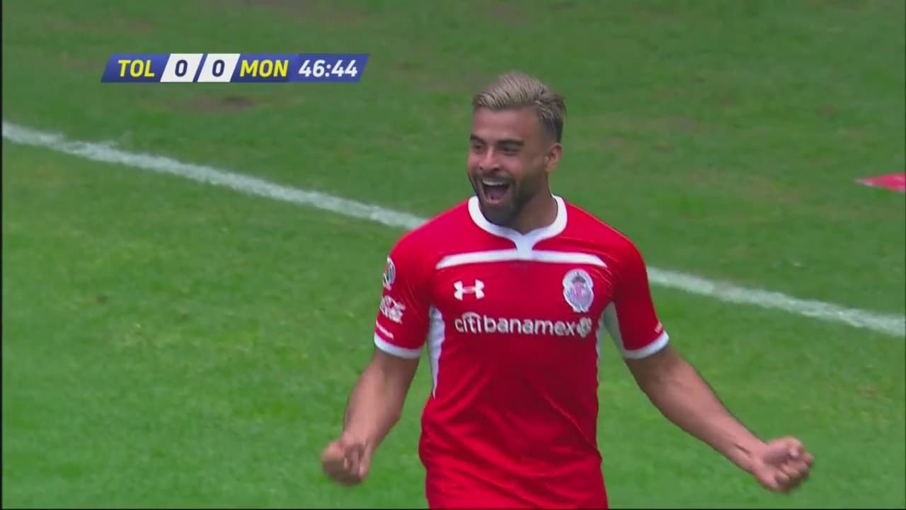 El delantero de Toluca cerró perfecto la pinza y logró rematar ante una férrea marca para poner la ventaja sobre Monarcas.