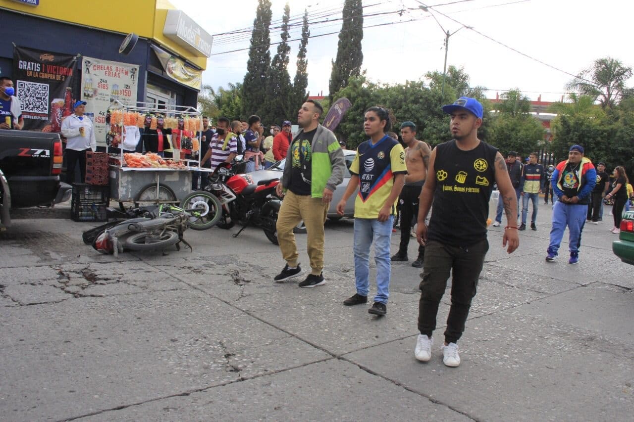 Los potosinos les dijeron a los americanistas que ya se fueran porque: "Les van a partir su madre" a lo que los hinchas de Las Águilas respondieron insultando y pateando una motocicleta que estaba estacionada y encarando a los del Atlético de San Luis.