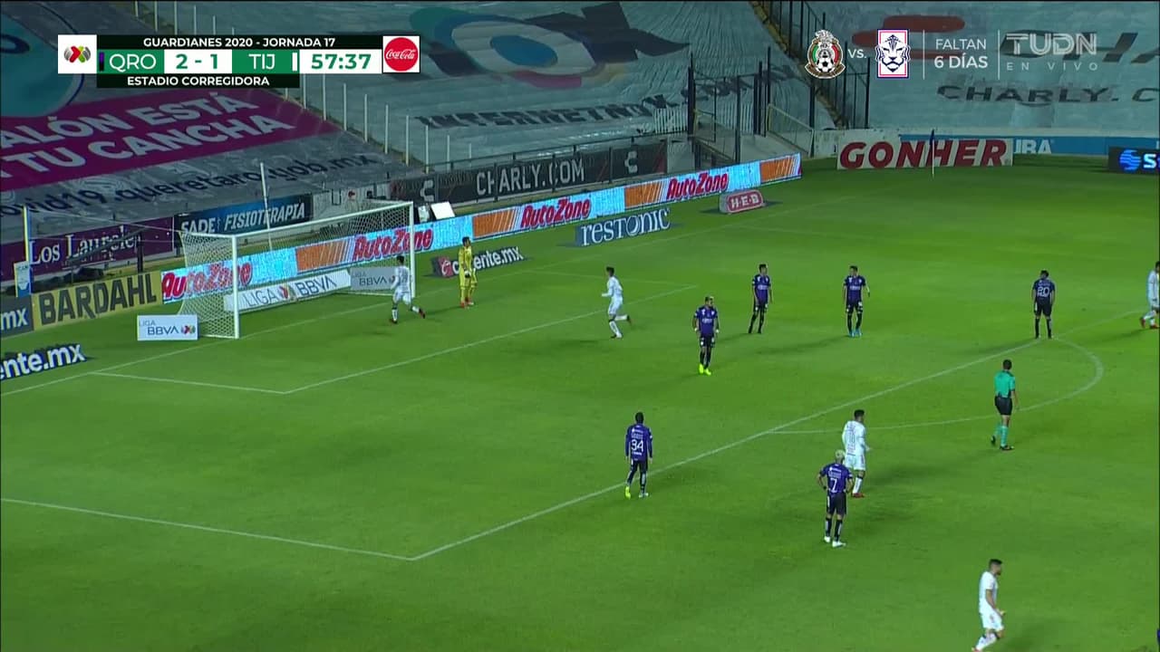 ¡Gol! Querétaro 2| Club Tijuana 2. Vladimir Loroña (Club Tijuana) zurdazo desde el centro del área por el lado derecho de la portería. Asistencia de Fabian Castillo.