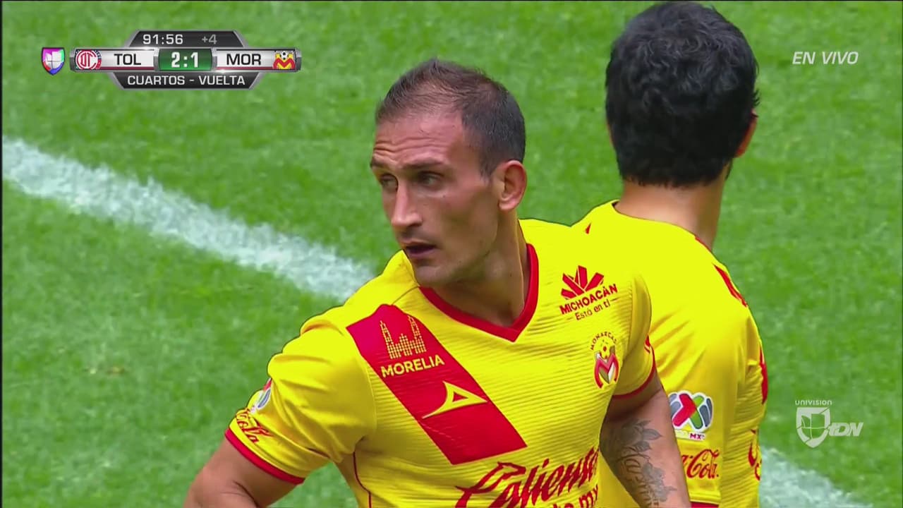 Aprovechando un cobro de tiro de esquina el argentino superó la defensa del Toluca anotando el 2-1.