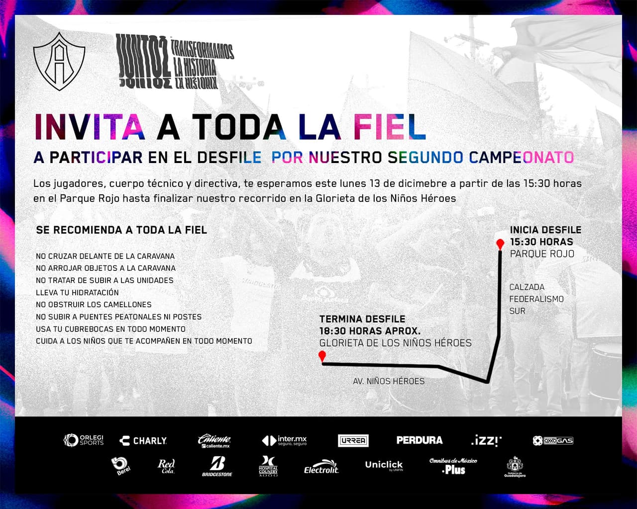 Para este lunes el club invitó a la afición a que acuda al desfile que harán por la tarde, luego tienen programada una misa en la Basílica de Guadalupe.