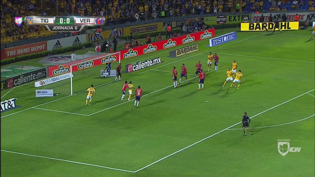 El arquero peruano del Veracruz rechazó el remate con la testa del zaguero de Tigres, apenas en el primero minuto de acción del juego en el ‘Volcán’