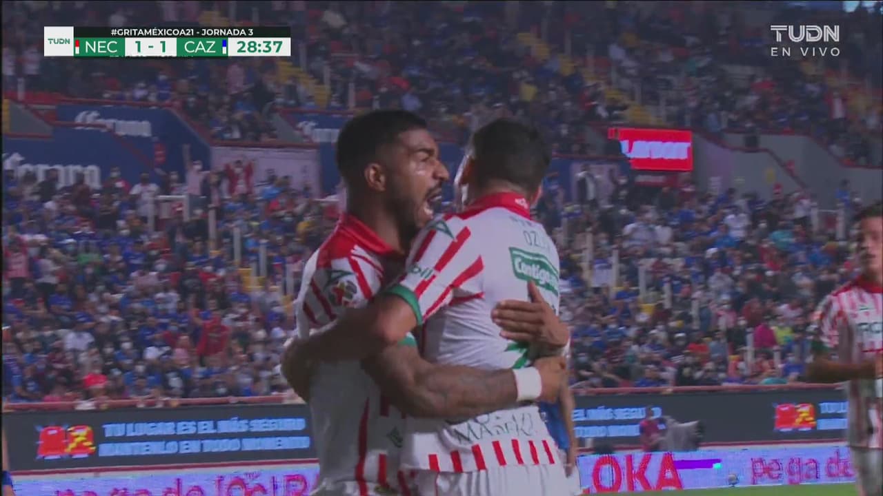 Necaxa consigue la igualada gracias a la pena máxima por una falta del 'Cata' sobre Formiliano.