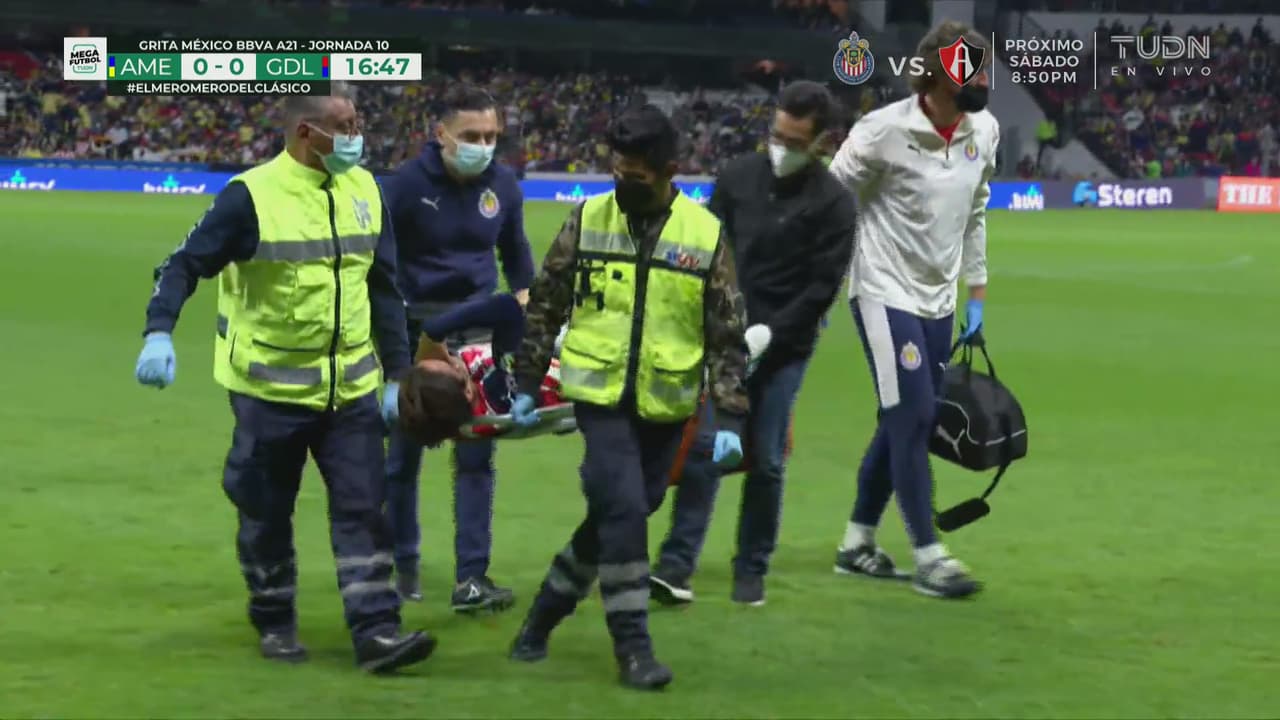 El 'Cone' se quejó antes de no poder seguir en el terreno de juego por una molestia muscular en el muslo derecho, por lo que ya estando en el piso pidió que entrarán las asistencias médicas.