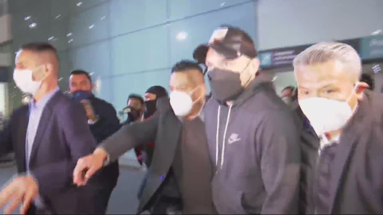 Cabecita, que viajó desde Uruguay, llegó entre una multitud de prensa y aficionados que lo estaban esperando desde la noche del martes, pero salió del aeropuerto pasada la media noche y con ayuda de elementos de seguridad rápidamente fue trasladado a la camioneta que lo llevó a su hotel para reportar con América este miércoles.