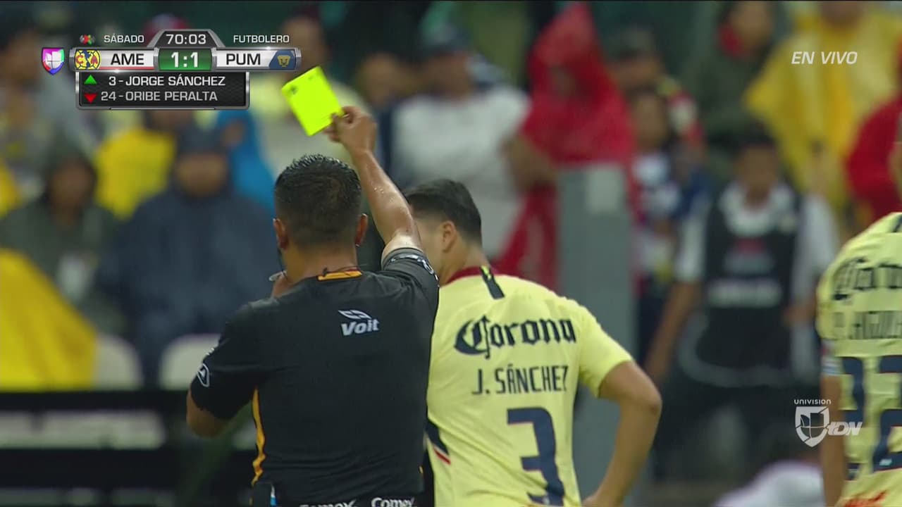 El defensa del América ingresó antes de que Oribe abandonará la cancha en el cambio y el árbitro lo pintó de amarillo.