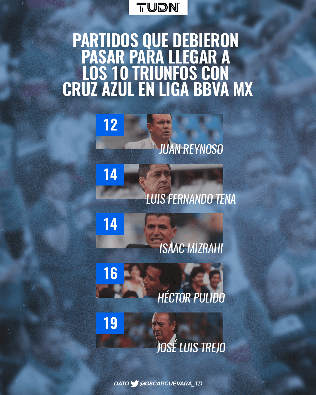 Héctor Pulido y José Luis Trejo fueron otros de los estrategas que lo consiguieron en mayor número de cotejos al frente de los cementeros, pero por debajo de los 20 partidos dirigidos en la Liga BBVA MX.