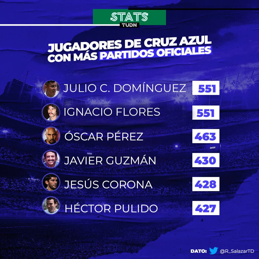 Julio César Domínguez llegó este jueves a 551 partidos oficiales con Cruz Azul para ser el jugador con más encuentros por parte del cuadro celeste; José de Jesús Corona superó en este rubro a Héctor Pulido.