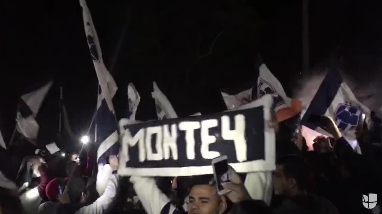 El grupo de animación del Monterrey se postró en El Barrial para cantarle a sus jugadores, quienes participaron en la 'fiesta' de la noche previa al primer clásico regio de final.