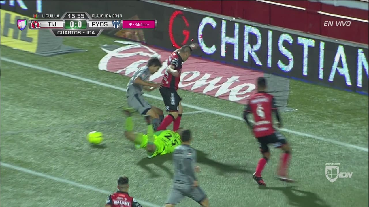 El arquero de Tijuana atajó un derechazo del colombiano y luego frustró el contraremate de Lucas Albertengo que tardó y se enredó con la pelota.