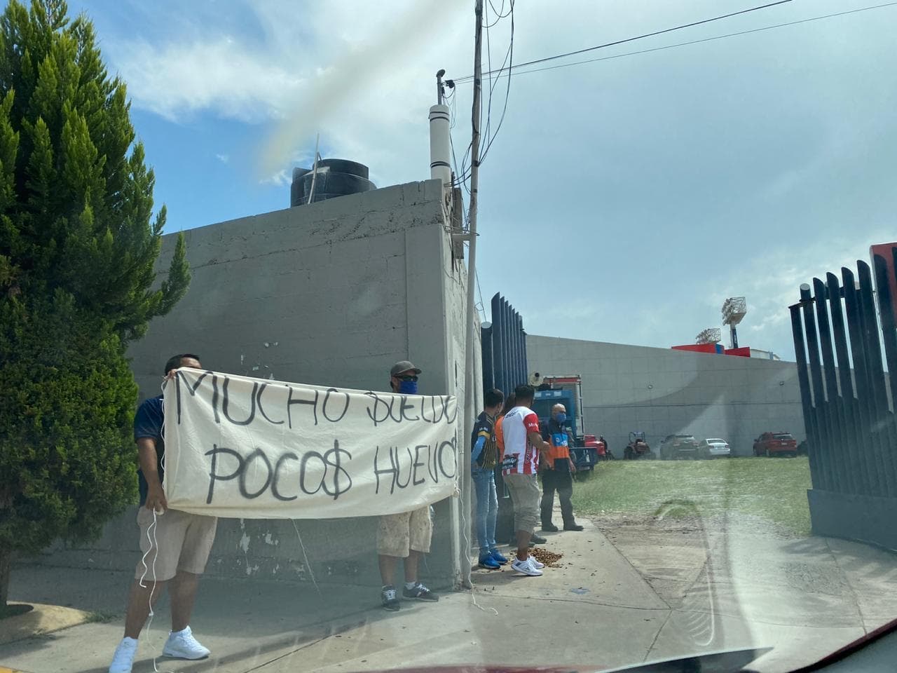 ”Mucho sueldo, pocos huevos” y "con el próximo sueldo cómprense unos huevos" se leyó en los mensajes dirigidos al equipo debido a la mala racha en la que se encuentra el club, ya que es último en la tabla de posiciones con cinco puntos tras ocho jornadas disputadas.