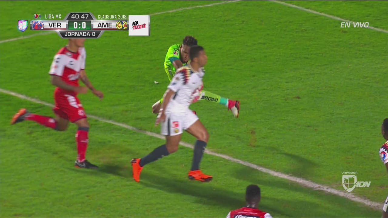 La primera parte del encuentro fue parecida a un partido de entrenamiento para ambas escuadras: tranquilo y sin ganas de Veracruz echó el camión atrás y América no se atrevió a arriesgar al frente por falta de ideas. La única oportunidad de peligro de los primeros 45 minutos tediosos la protagonizó Oribe Peralta tras un error de la defensa escuala.