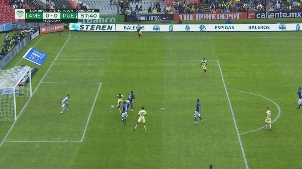 Balón a profundidad del América prolongado por Henry Martín, pero Andrés estaba adelantado al 56’.