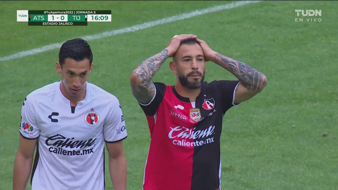 Atlas desea repetir la dosis, pero el remate del argentino no fue el correcto, al minuto 17.