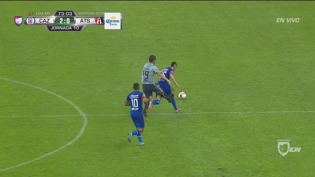 El delantero del Atlas perdió la pelota y luego metió una dura patada al ‘Piojo’ que el árbitro solo sancionó con tarjeta amarilla.